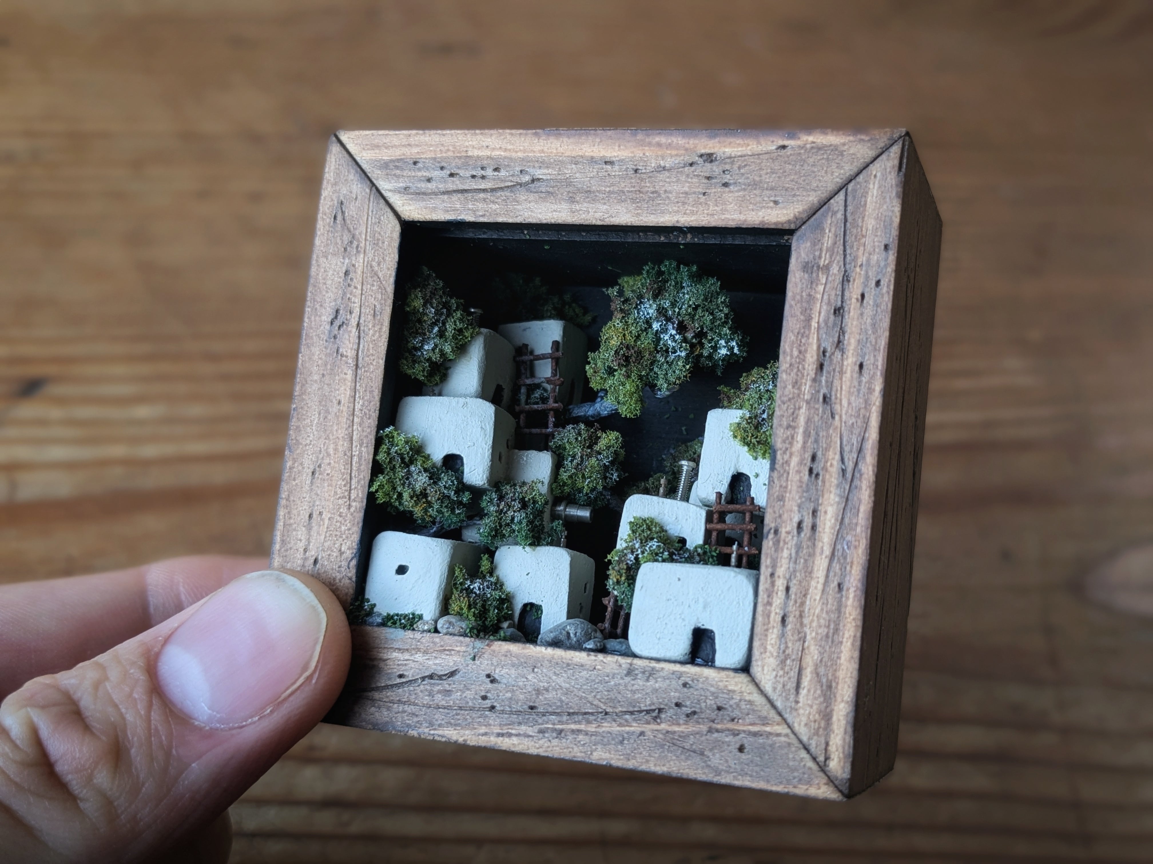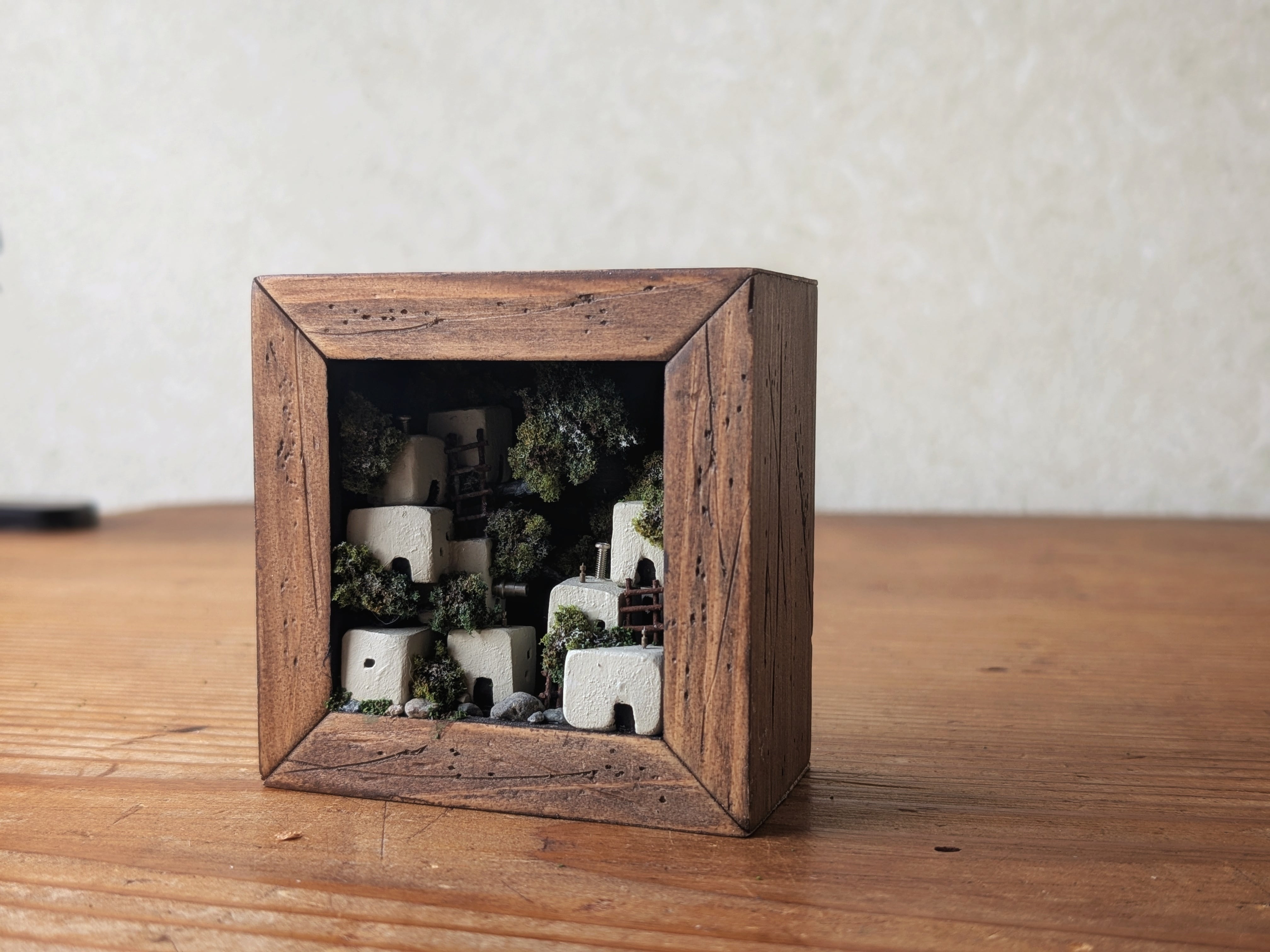 「標本箱に閉じ込められた小さな街。時を止めた建物たちは、記憶の欠片を散りばめ、誰かが再び訪れる日を静かに待っている」
