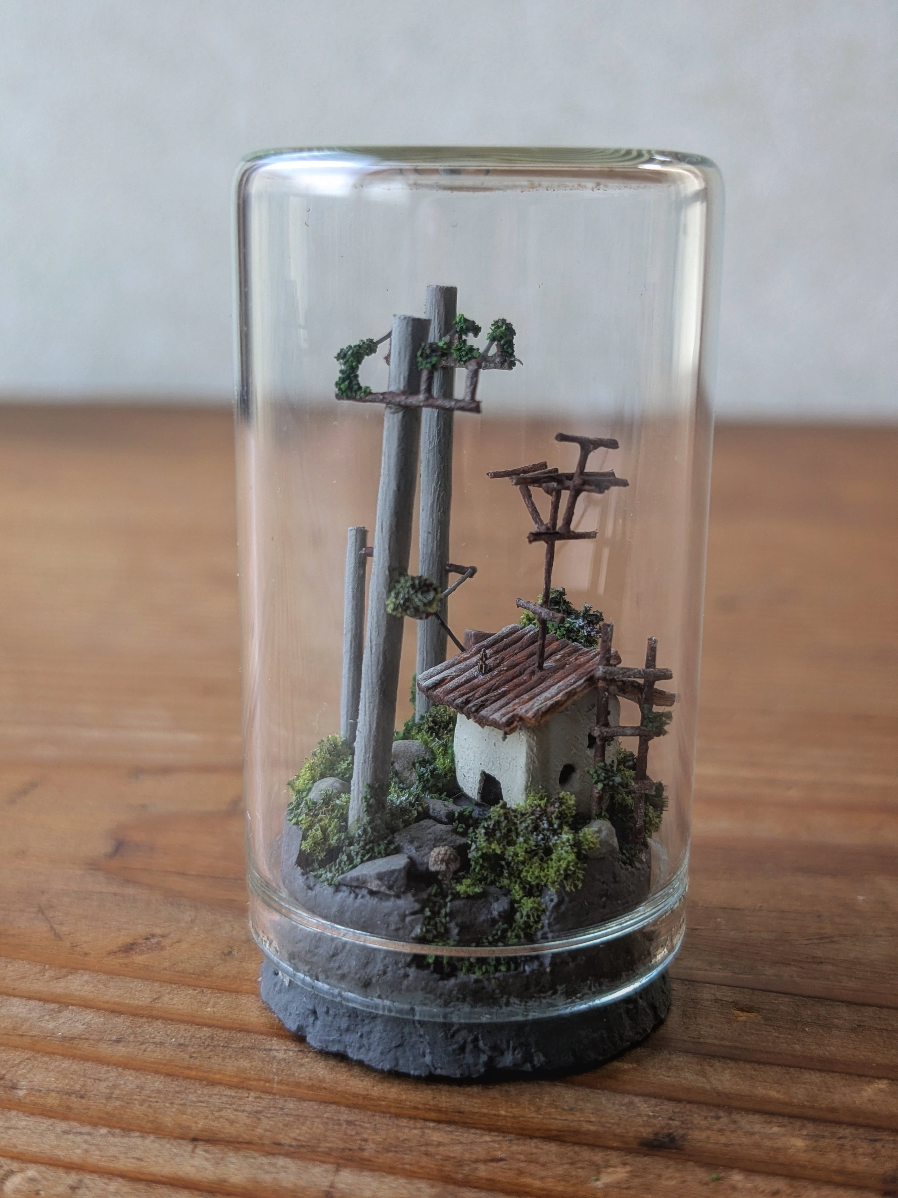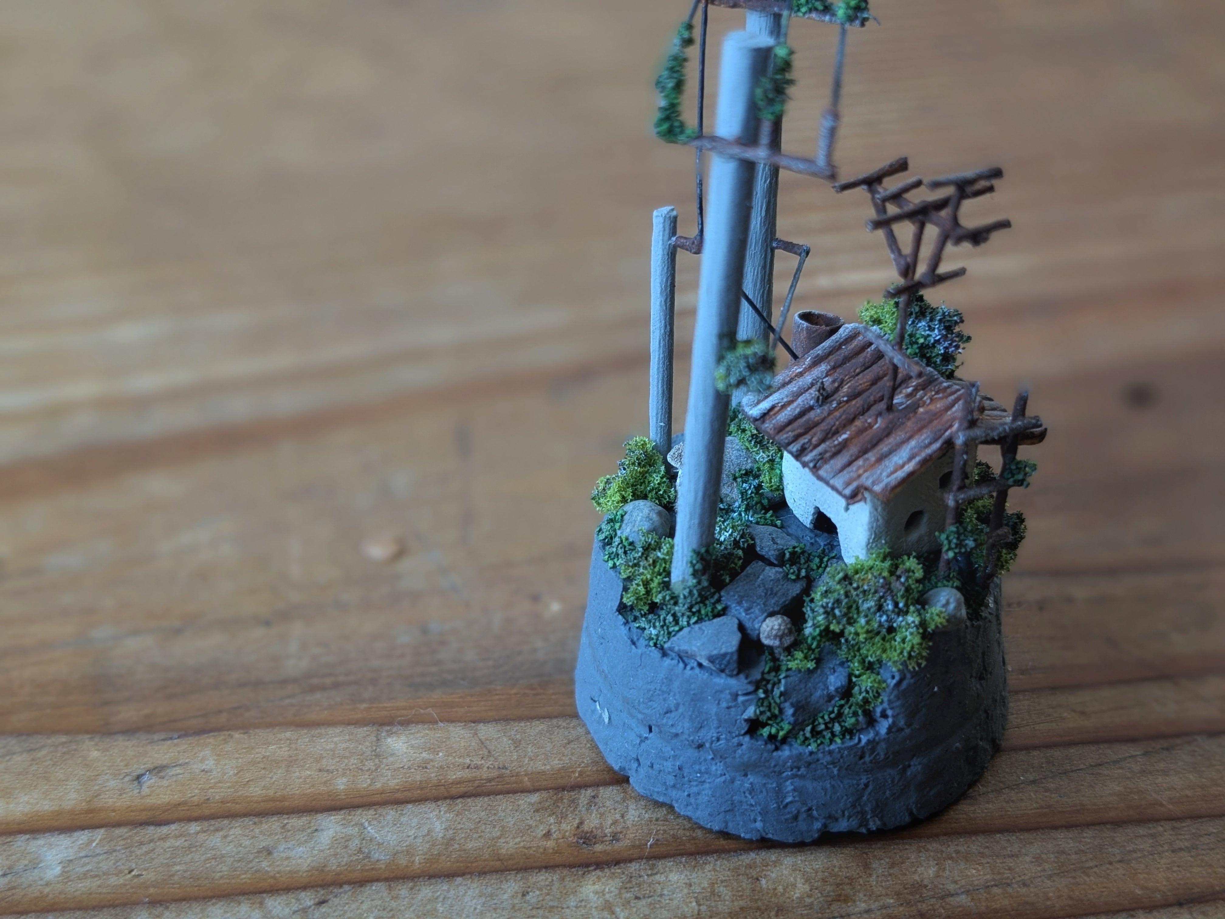 錆びれたトタン屋根の小さな家のオブジェ。