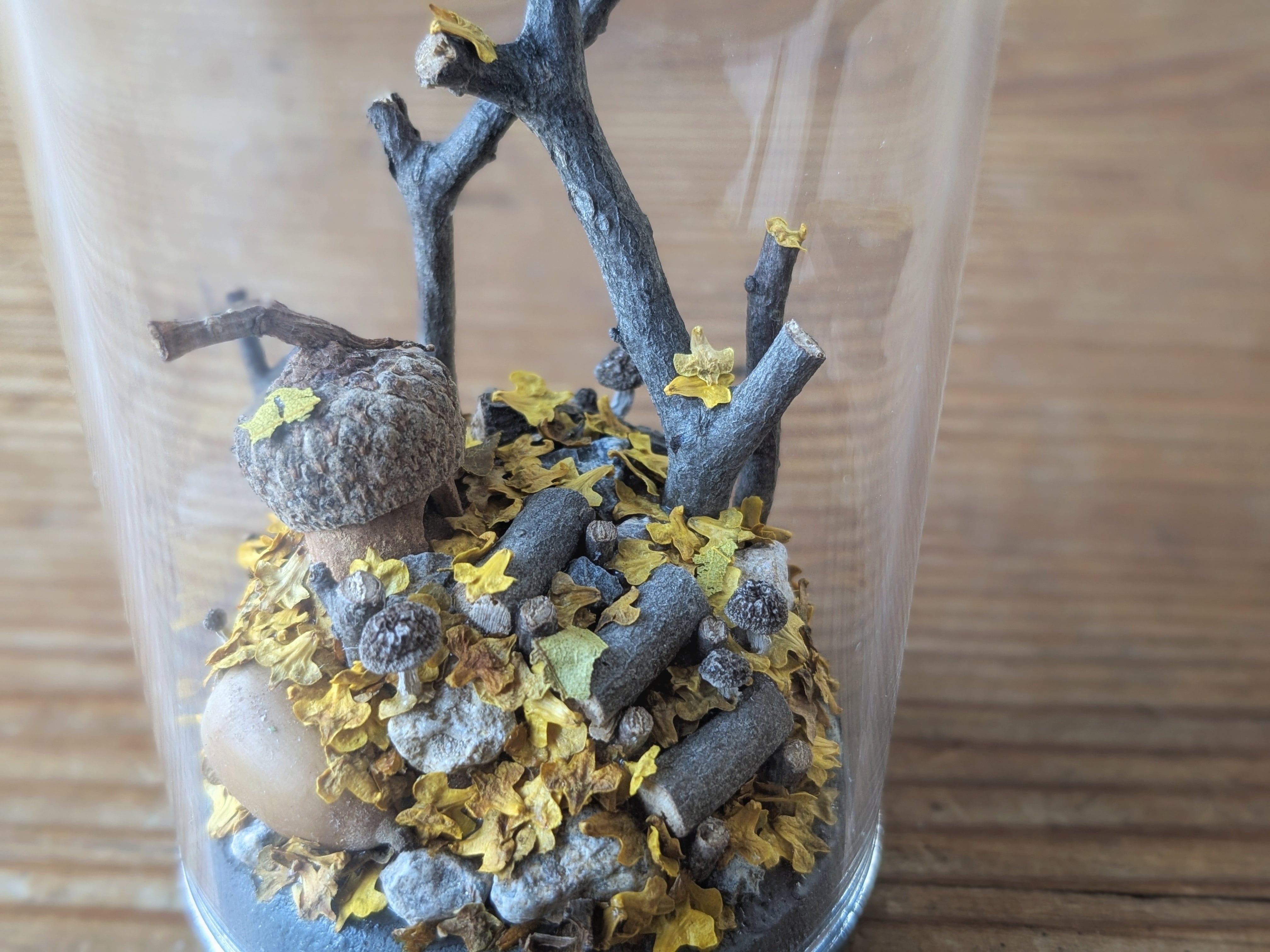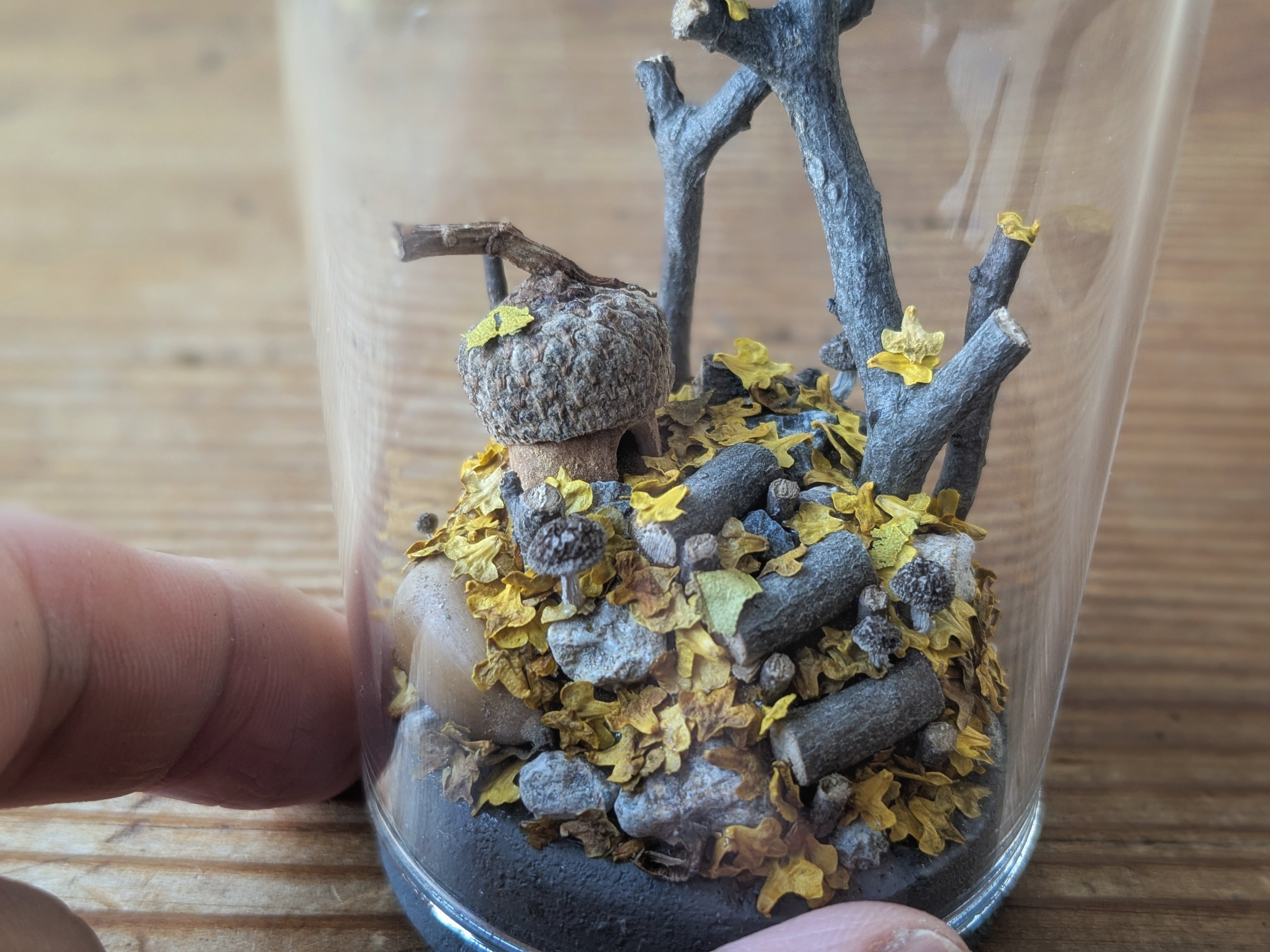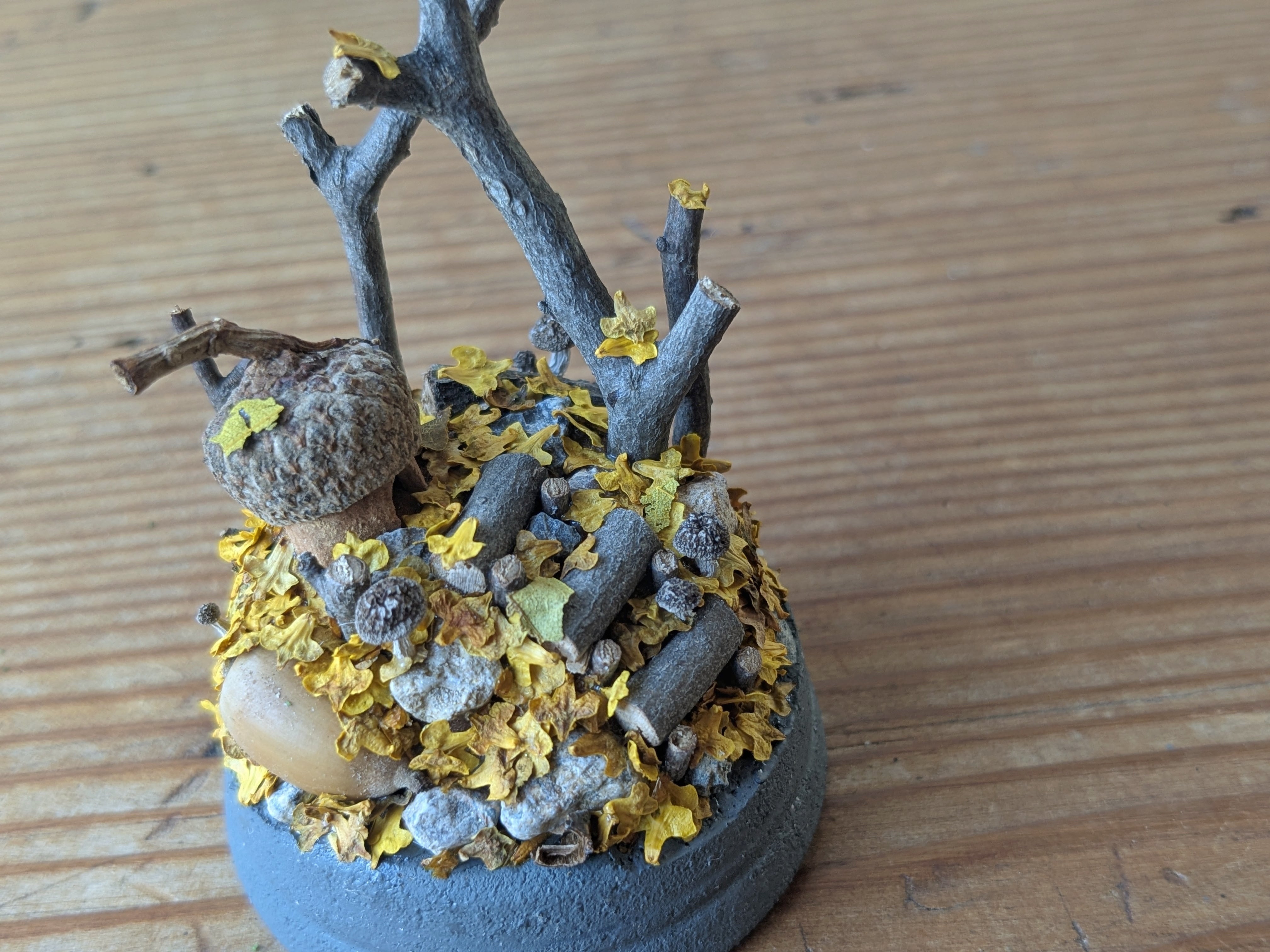 どんぐり帽子の家と小さな秋。今年も黄色い落ち葉がたくさん積もりました。
